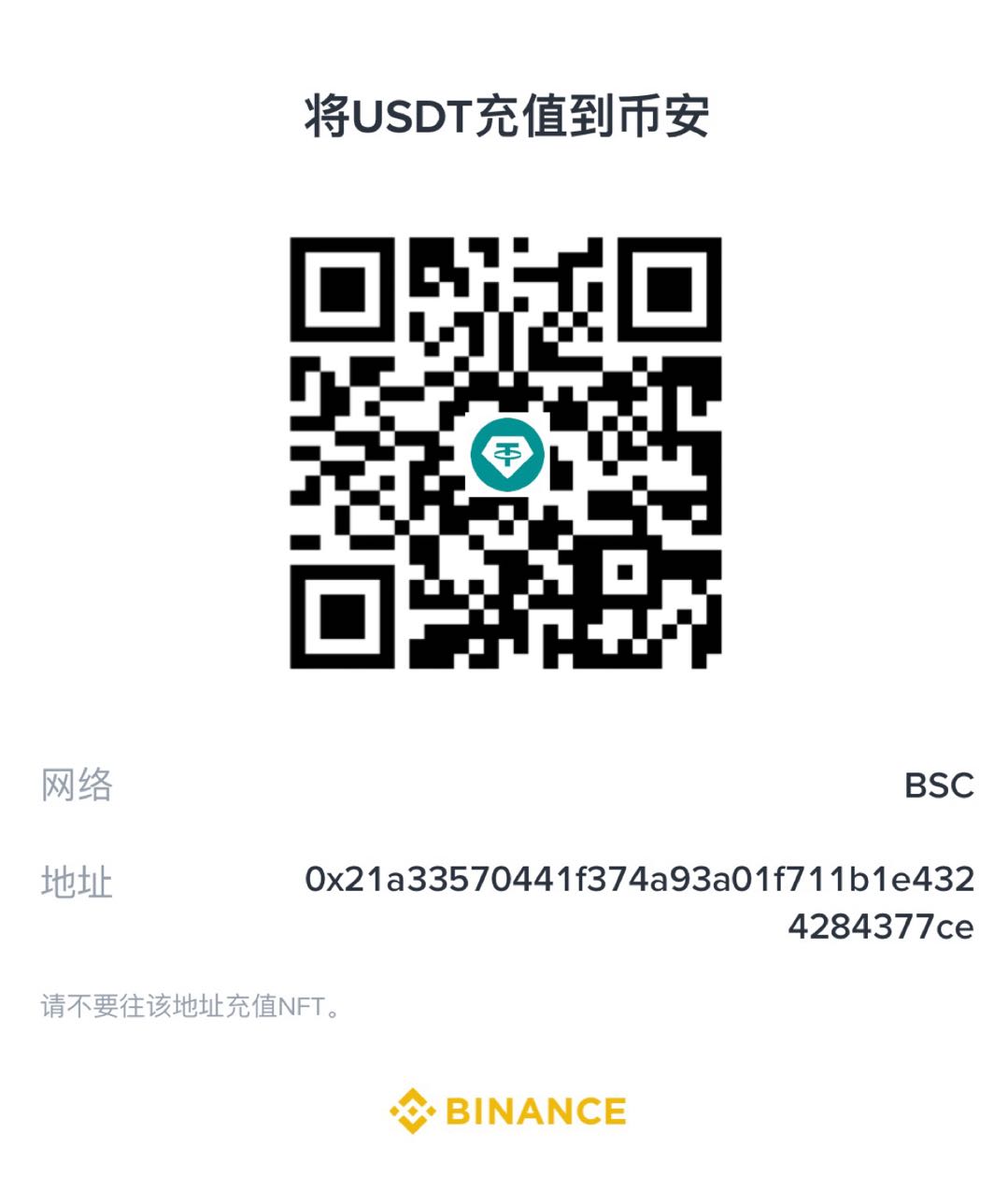 ⚠️ 请务必选择 BSC (BEP20) 链转账!